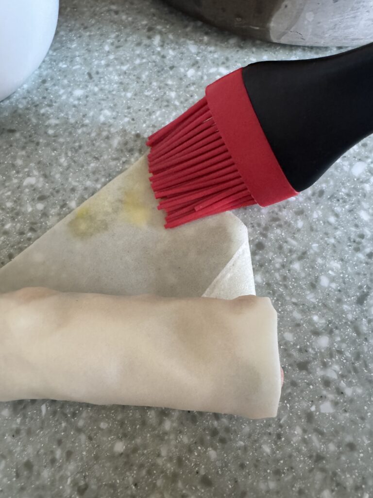 Can I use a different kind of egg roll wrapper? Yes. Just keep in mind there are a few differences. Vegan egg roll wrappers tend to be thicker and a little more doughy than traditional wrappers, so you’ll need to adjust slightly: